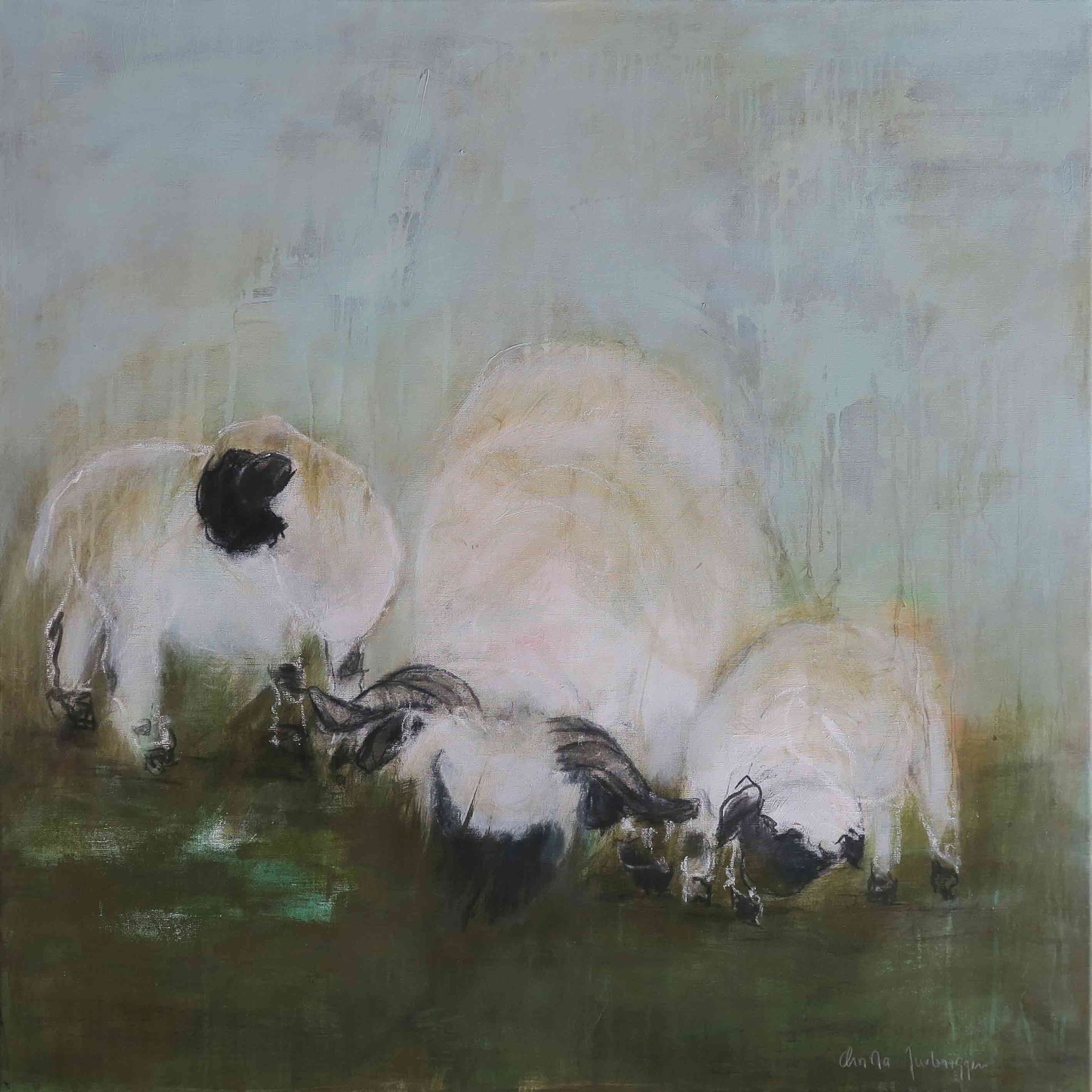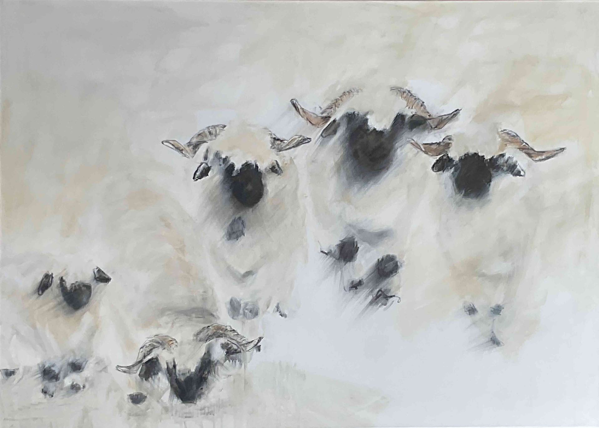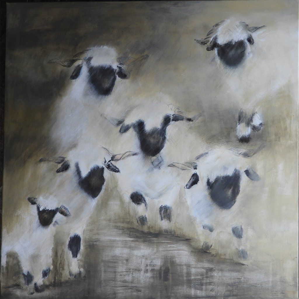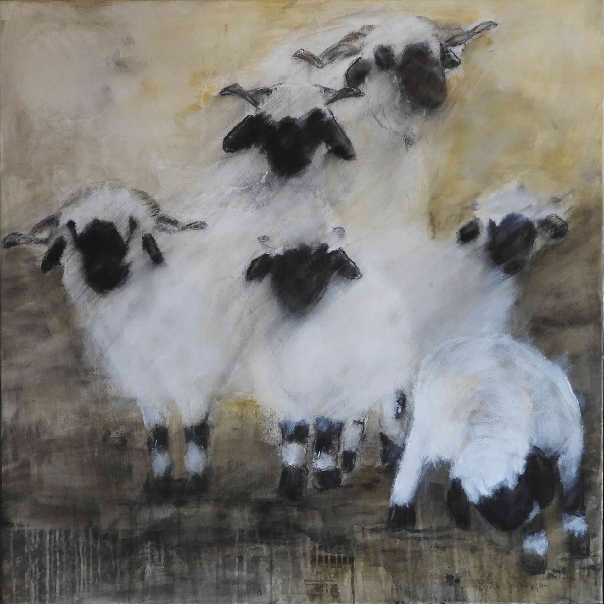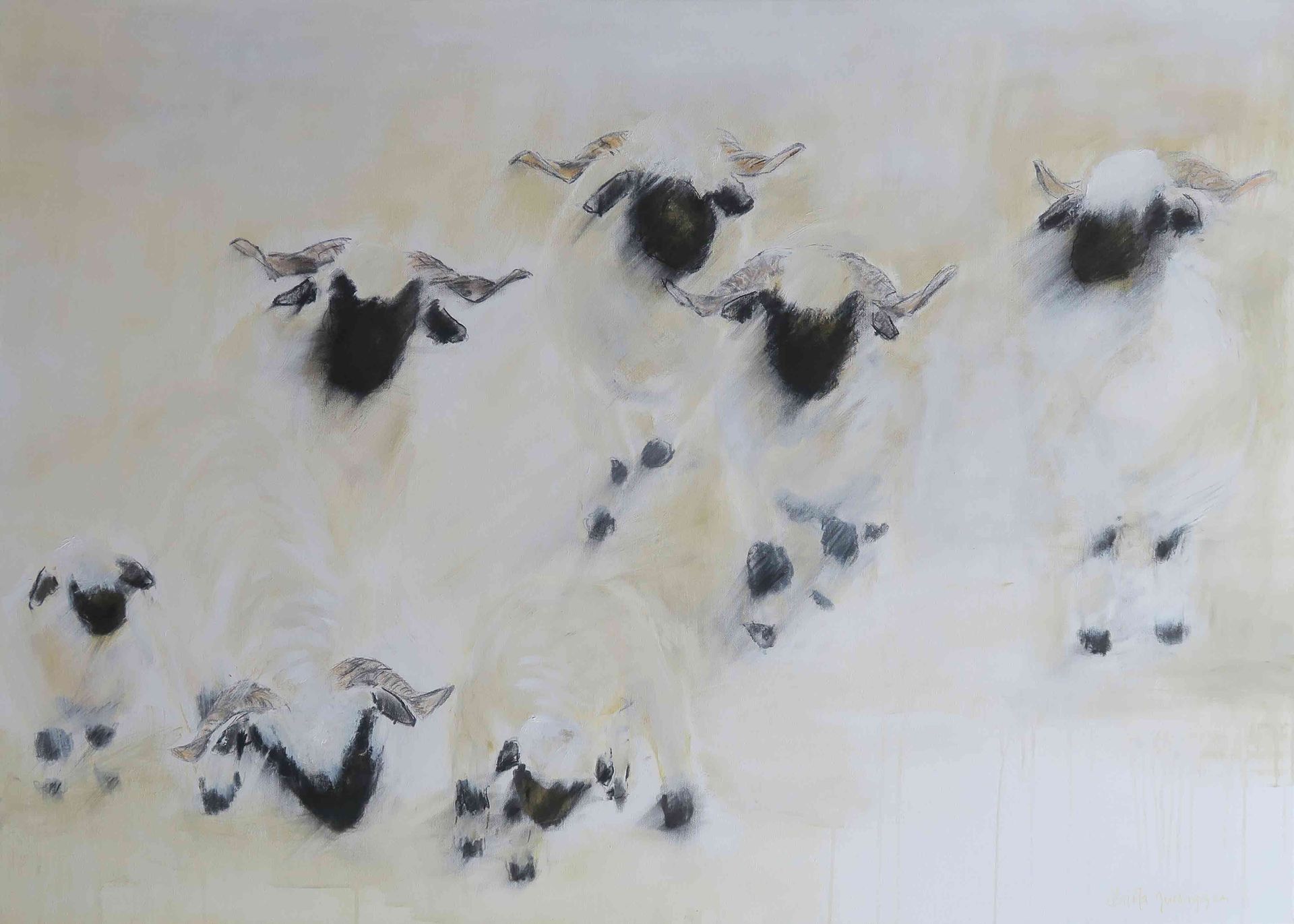 100 X 120 1 Schwarznasenschafe mit Lämmer