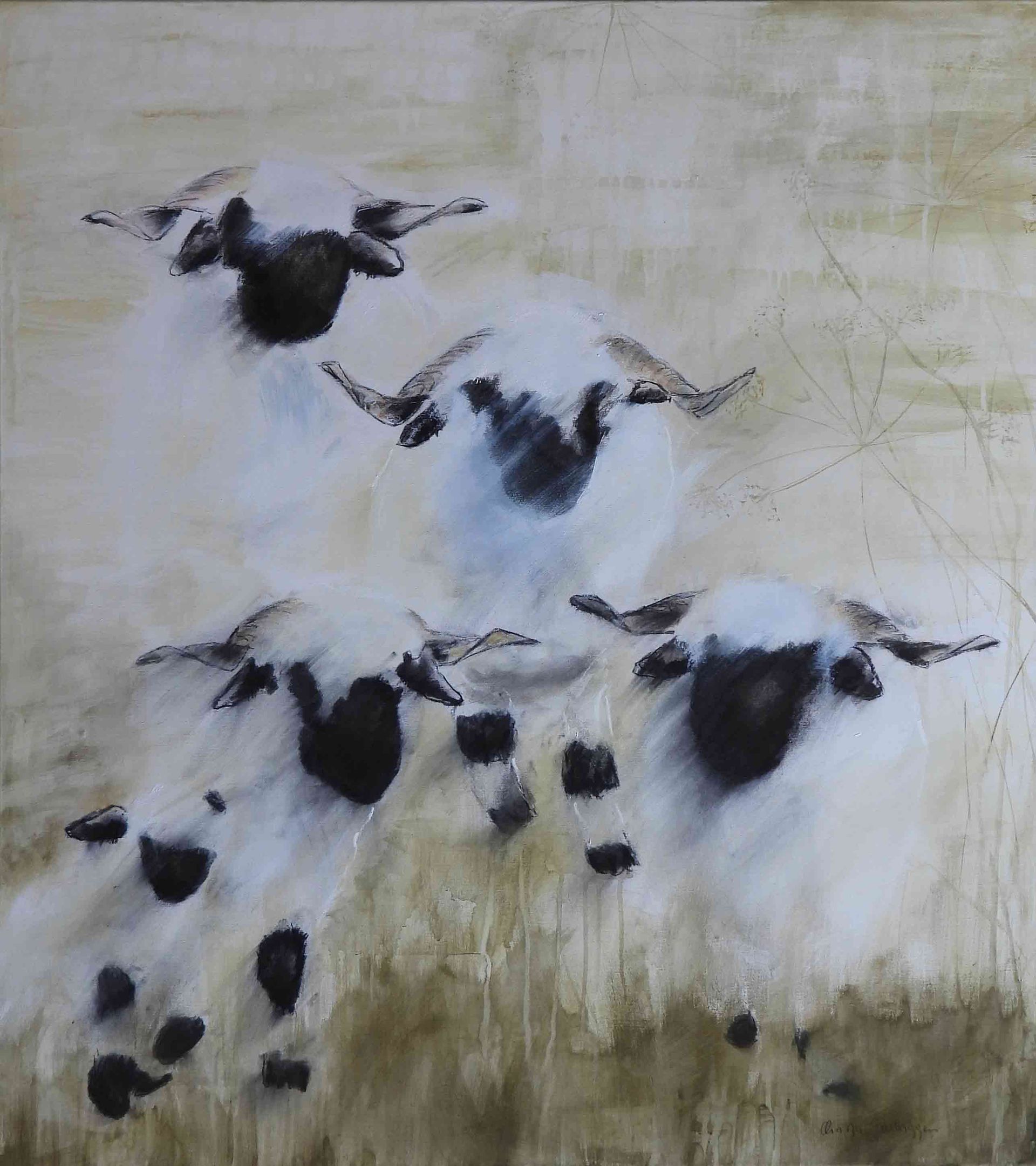 100 X 120 4 Schwarznasenschafe mit Lamm