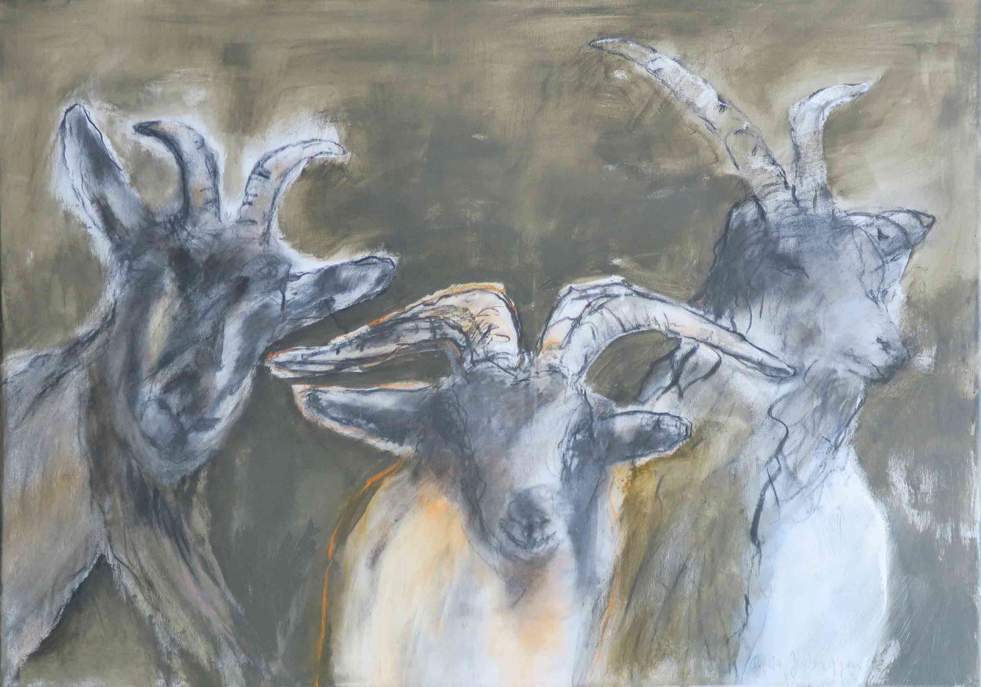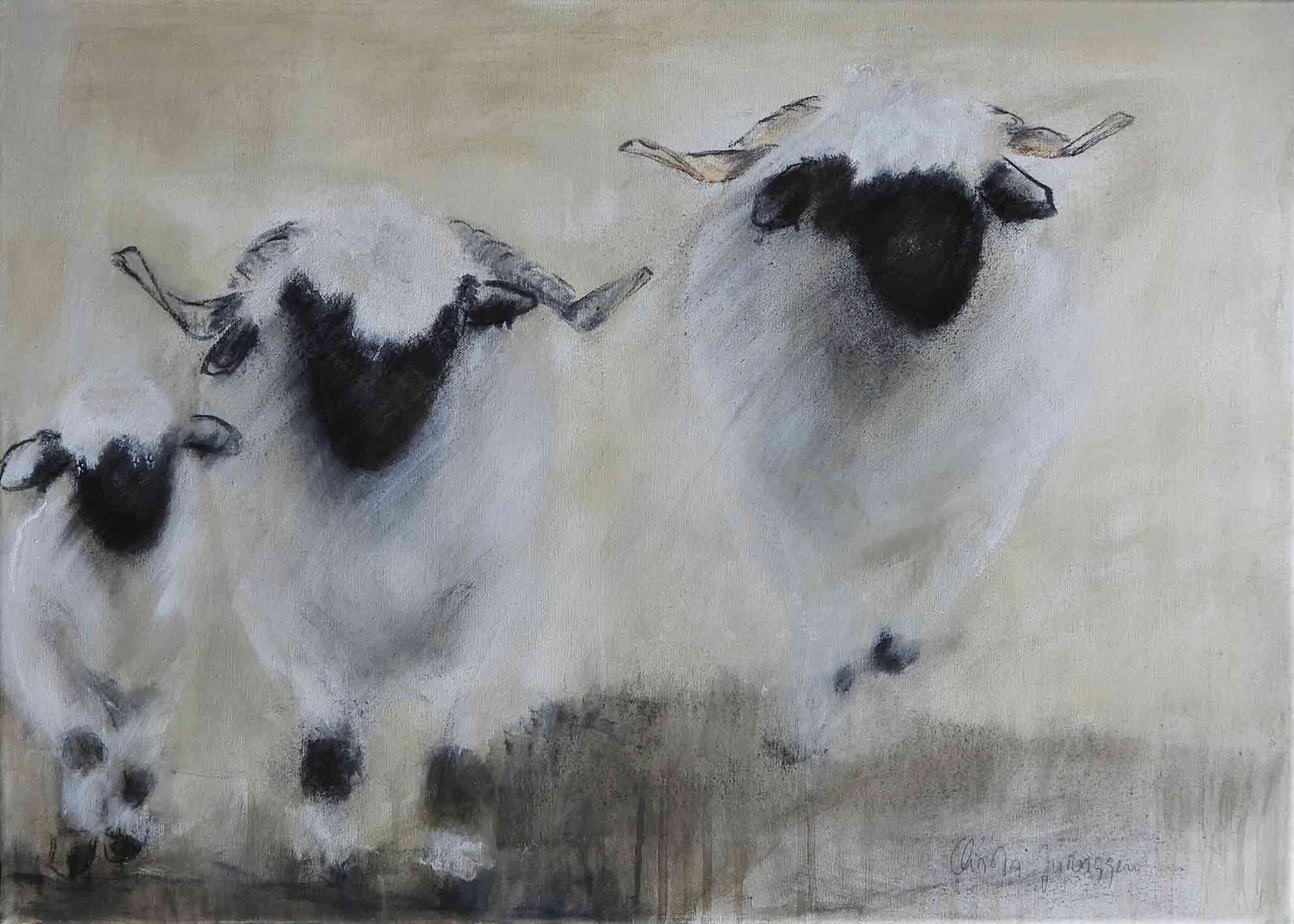 50 X 70 2 Walliserschwarznasenschafe mit Lamm