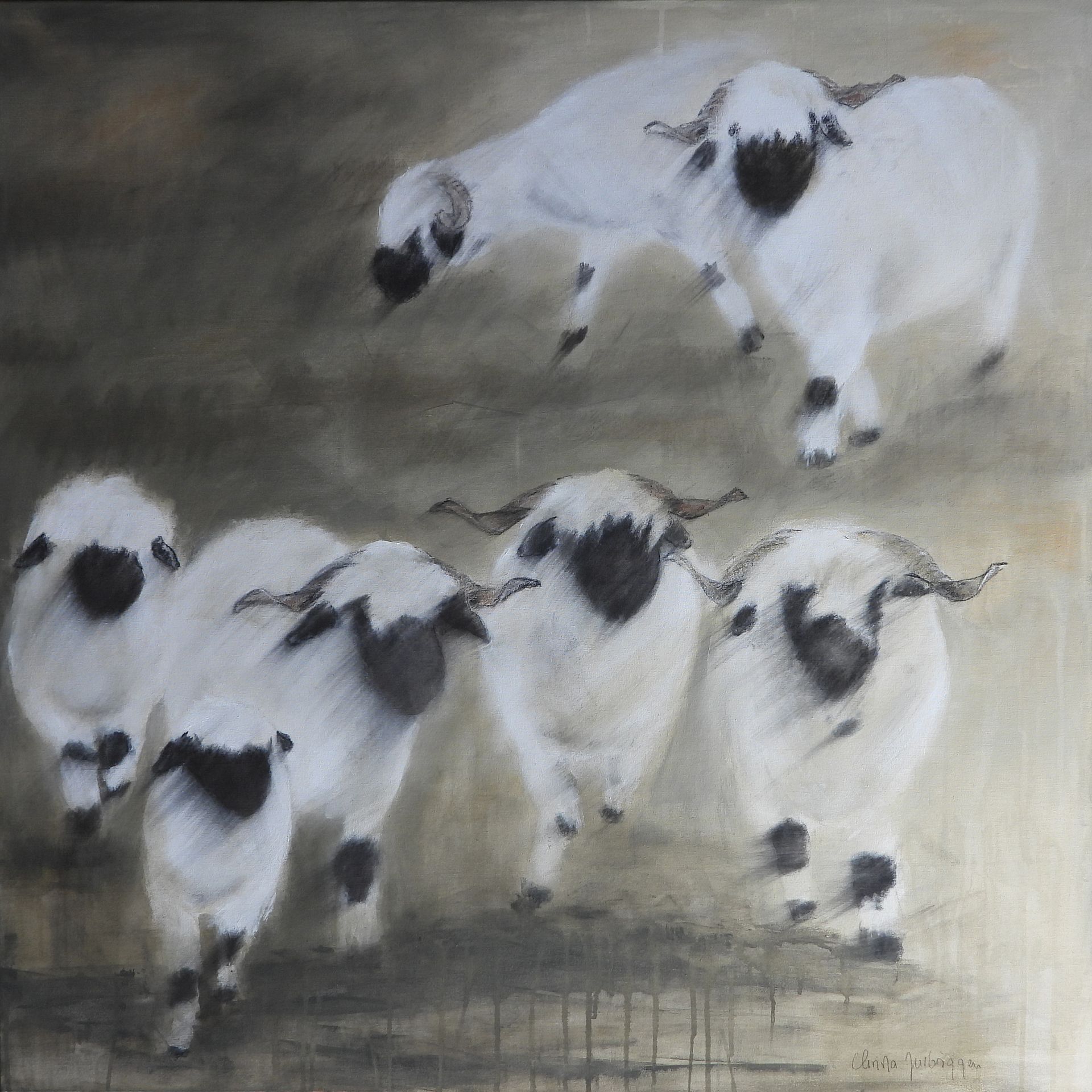 120 X 120 5 Walliserschwarznasenschafe mit 2 Lämmer