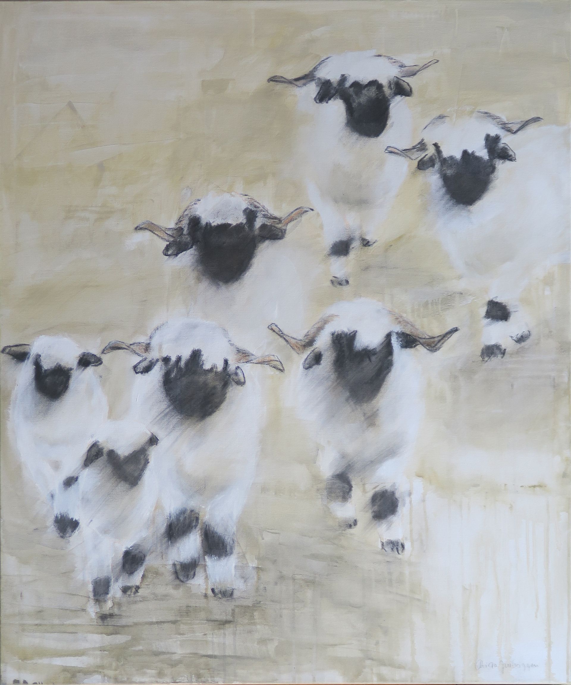 70 X 100 3 Schwarznasenschafe im 2 Lämmer